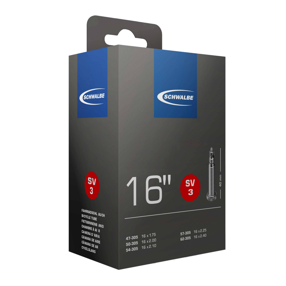 Mit dem 16-Zoll Schlauch von Schwalbe in sehr guter Qualität bist Du immer sicher unterwegs. Er ist sehr robust, hochwertig und langlebig. Der Schlauch passt für Kinderfahrräder und Fahrradanhänger.