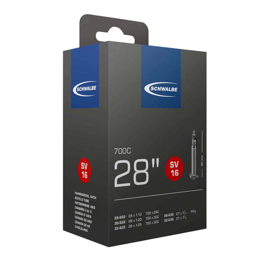 Schwalbe Standard Fahrradschlauch Nr. 16. Für Fahrradreifen in der Größe 28″ Zoll/700C (ETRTO 28/32-622/630). Hält die Luft überdurchschnittlich lang.