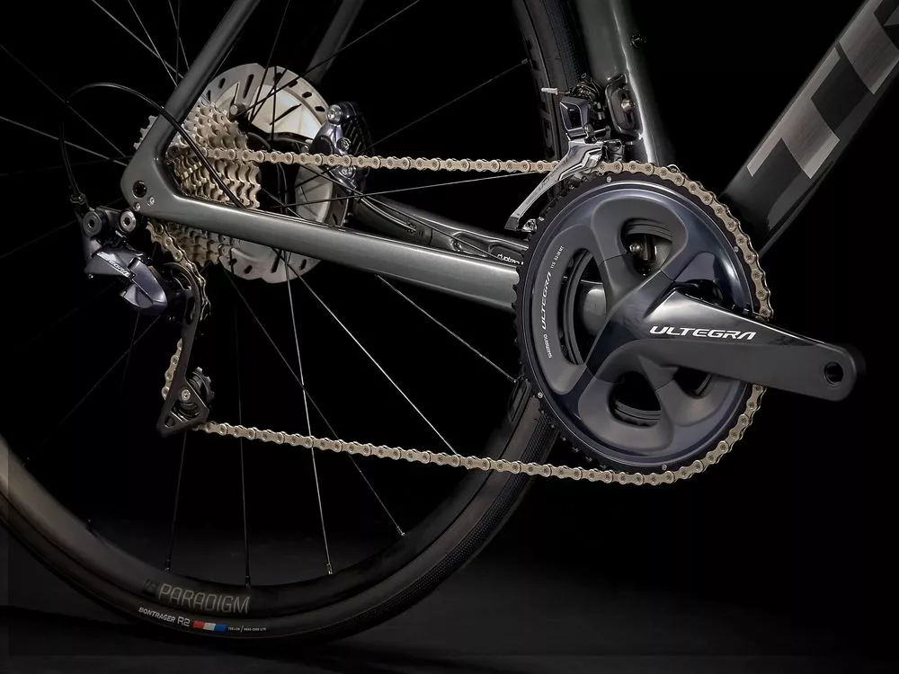 Mit der Ausstattung erhältst du einen leichten und aerodynamischen Rahmen samt Gabel aus 500 Series OCLV Carbon, eine komplette Shimano Ultegra 2×11-Gruppe und hochwertige Bontrager Paradigm Tubeless Ready-Laufräder.
